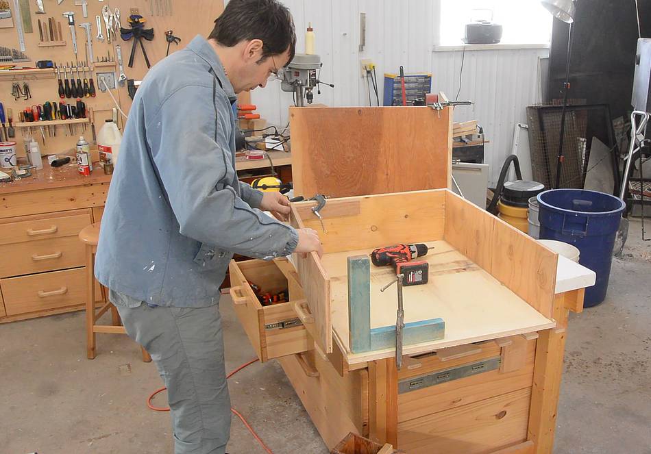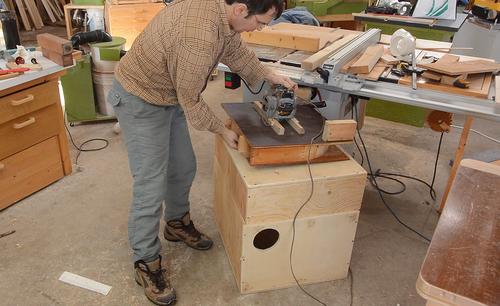 In the new basement workshop,