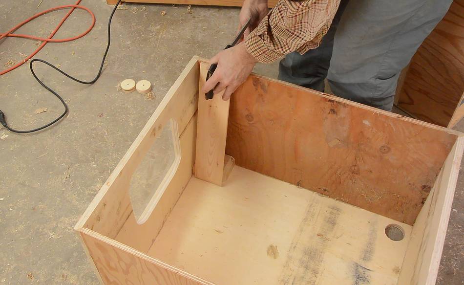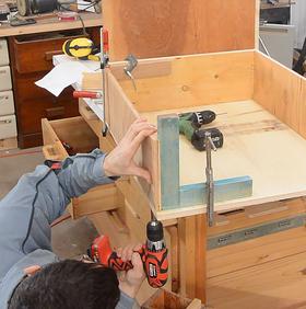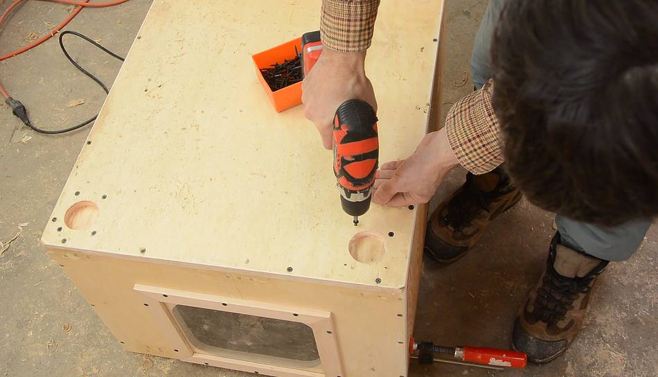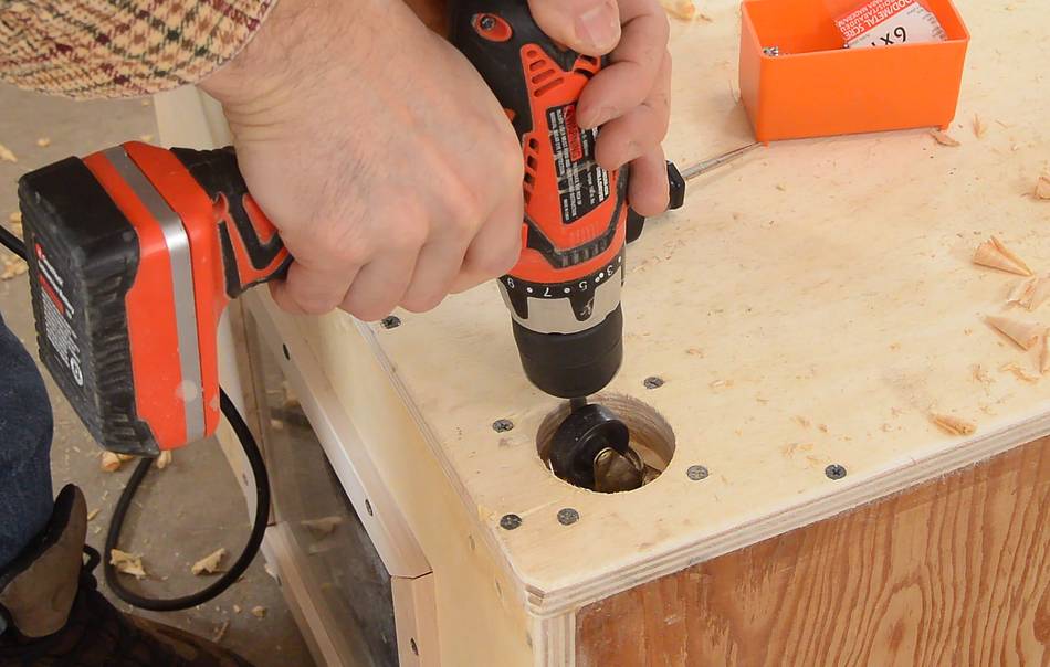 screw to avoid splitting the plywood.
