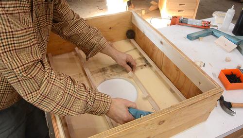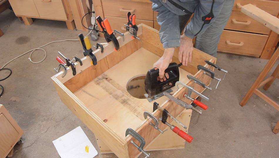 I used some really rough plywood scraps as material. I glued them together