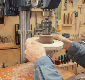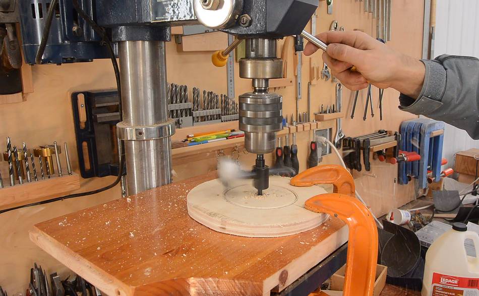 I cut the hole a fraction of a millimeter too small, so I sanded the inside edges with a drill press spindle sander attachment.