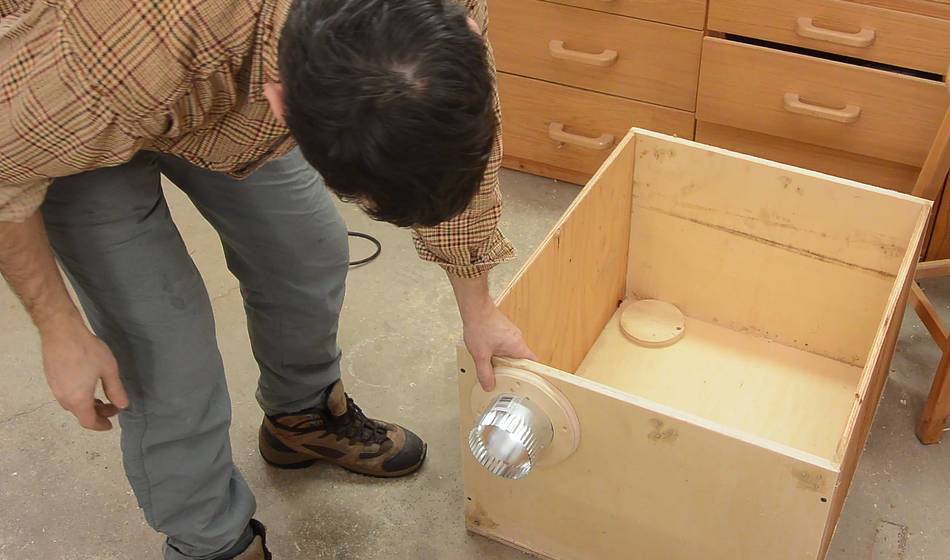 You can see two blocks of wood attached to the top of the dust collector. These are to allow the blower to stand vertically on the floor without tipping over for when I experimeted with using it as a welding smoke extractor. I figured I might as well leave these on. I might make temporary use of that blower for other purposes from time to time.