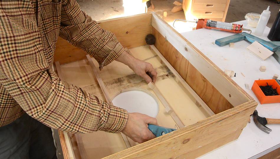 Then glued some blocks in the bottom where the holes are.