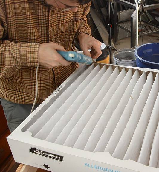 seal all around a filter that's folded. You can see all the dust on the