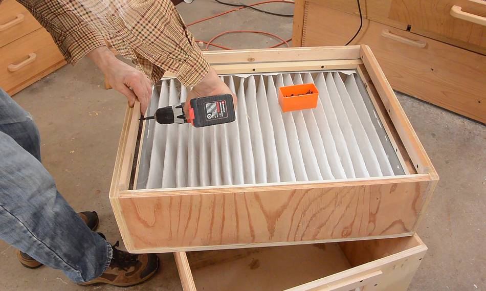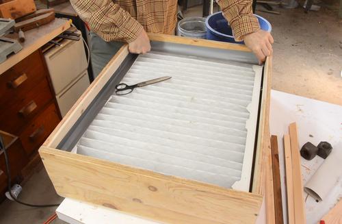 the filter in place, so I added four pieces of wood against the duct