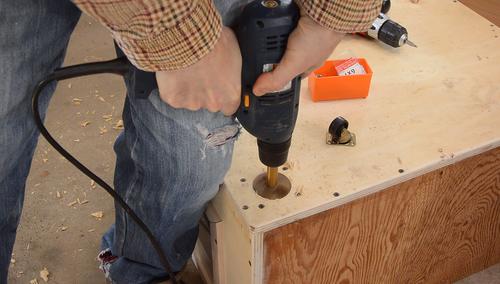 Then drilling the holes a bit deeper to recess the wheels