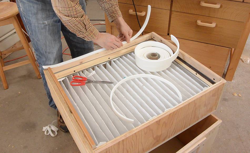 Then adding some weather stripping to the edge to help seal it against