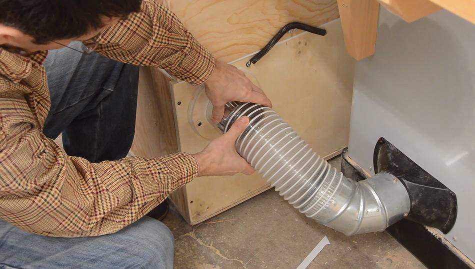Connecting it to the table saw. I was going to use a second elbow,