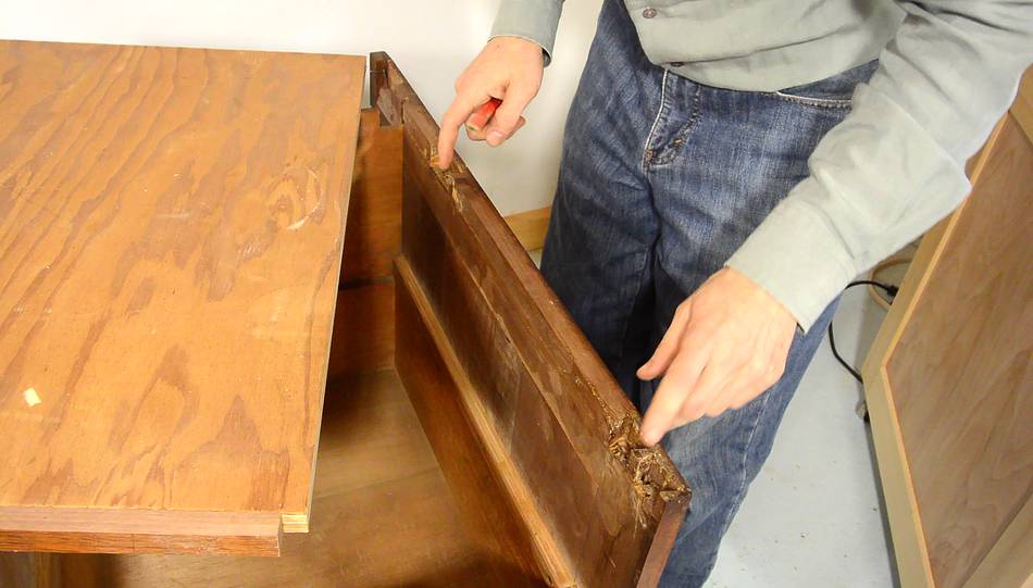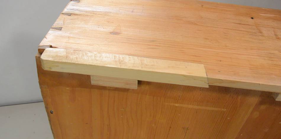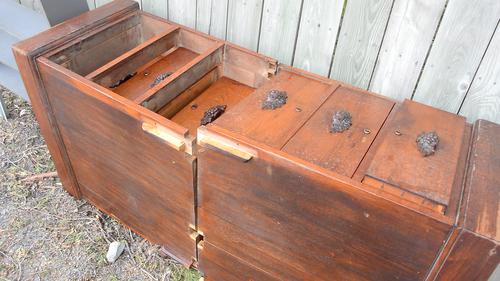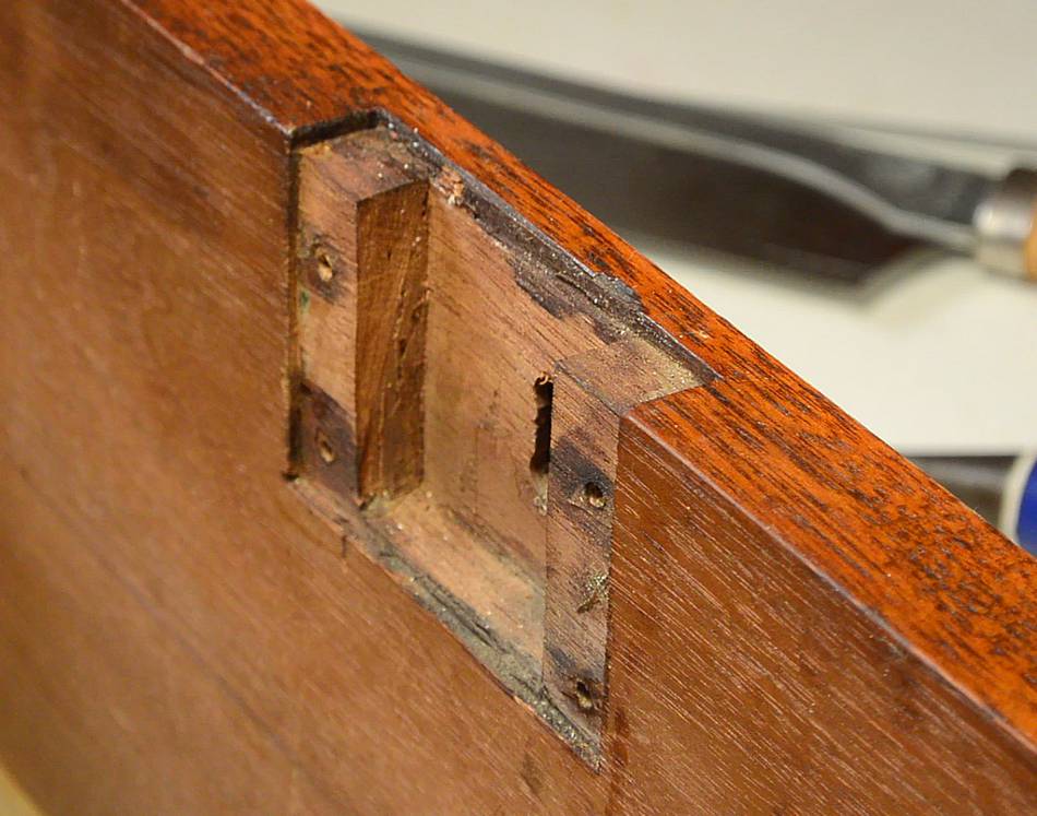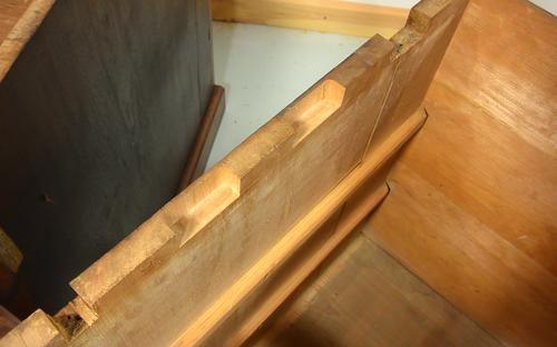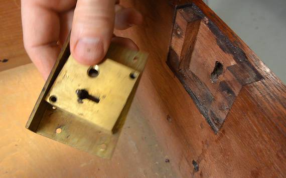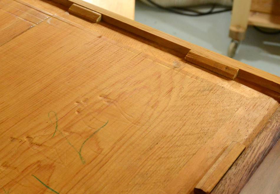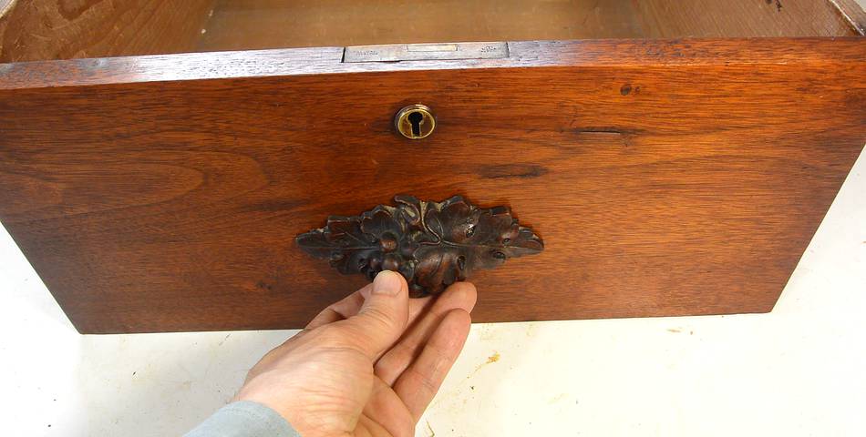 was well taken care of. Here, a sign of a repair made to one of the drawers.