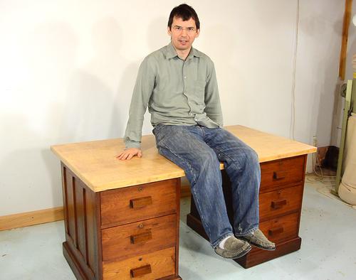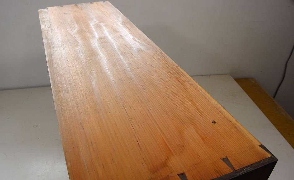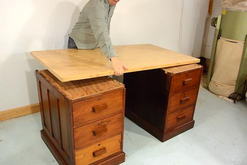 I will use an old desk slab as the top for these drawers. Here, just