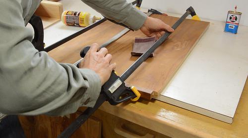 Gluing on a strip of mahogany to the front edge of the plywood. This came from