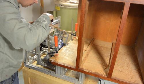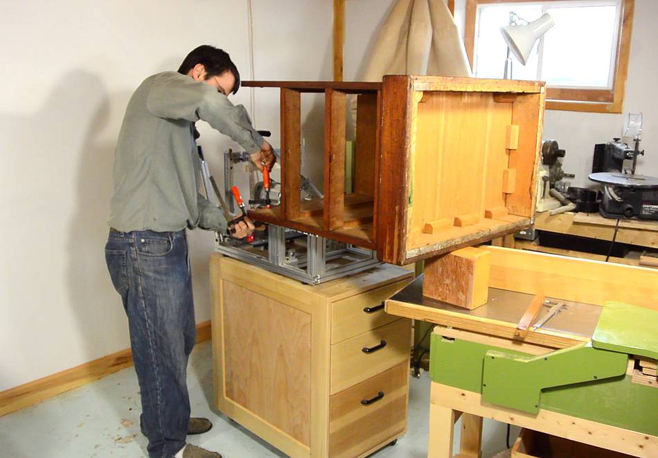Hoisting the drawer unit onto the pantorouter was a challenge, and I had to prop up the