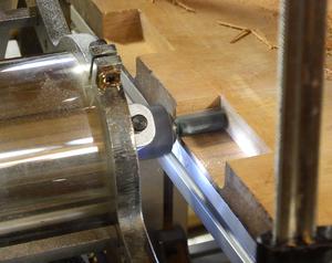 of a power planer. Towards the right, the lines at an angle are from