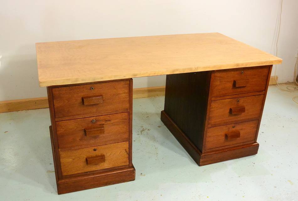 some mahogany boards that were with the desk remains. The mahogany boards look