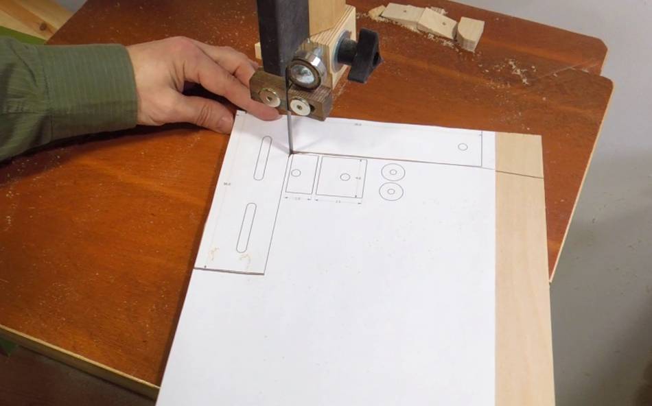 The mount for the tails jig has a slot cut into it. I cut this slot by making a series of holes just a bit larger than the screw that will go in the slot, I then cleaned that out with a chisel.