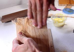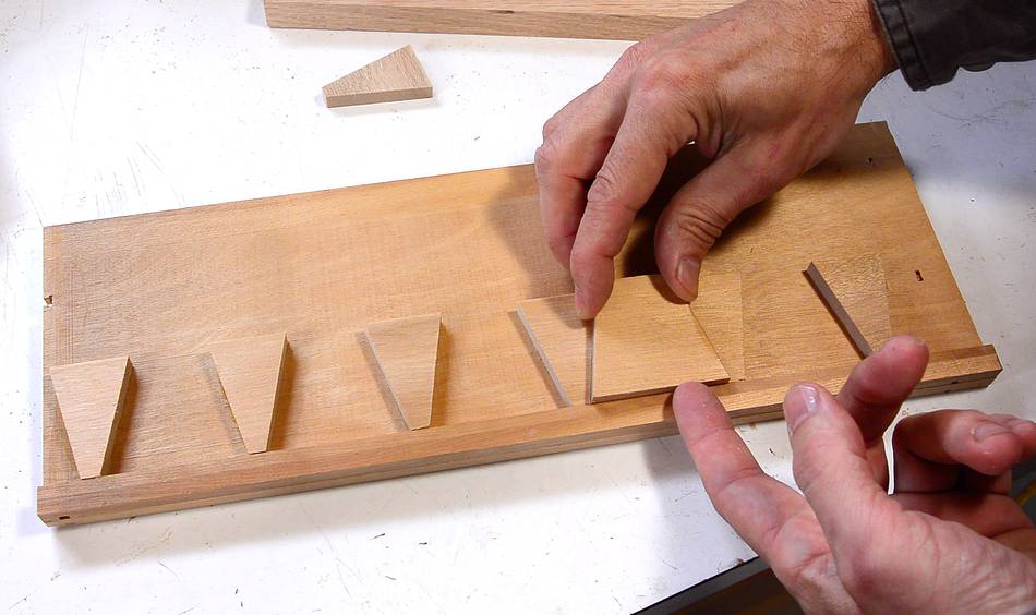 a strip of wood glued to one edge, and a series of wedges glued against it. I made