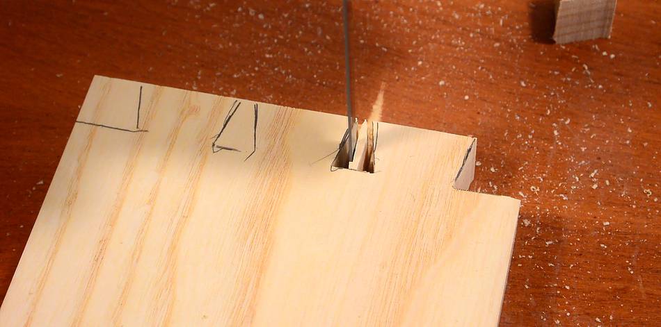 Some people cut dovetails very meticulously, but the bandsaw is better suited to working fast. On the plus side though, I don't have to worry about keeping a hand saw at a right angle to the wood.