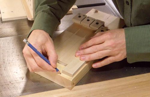 With the four spaces cut, I'm using a pencil to transfer the positions