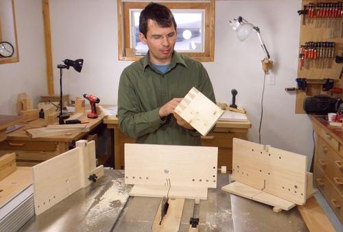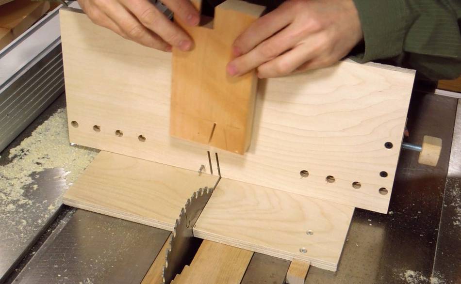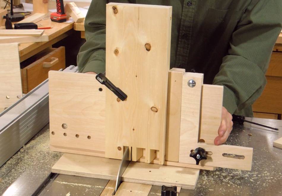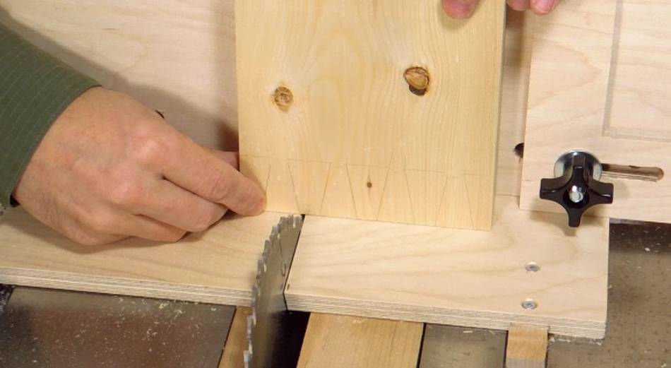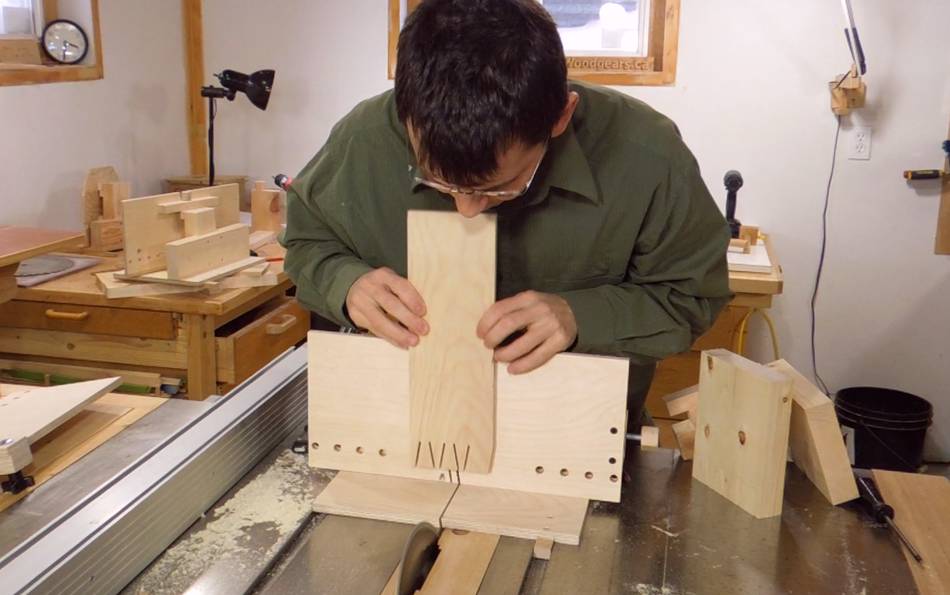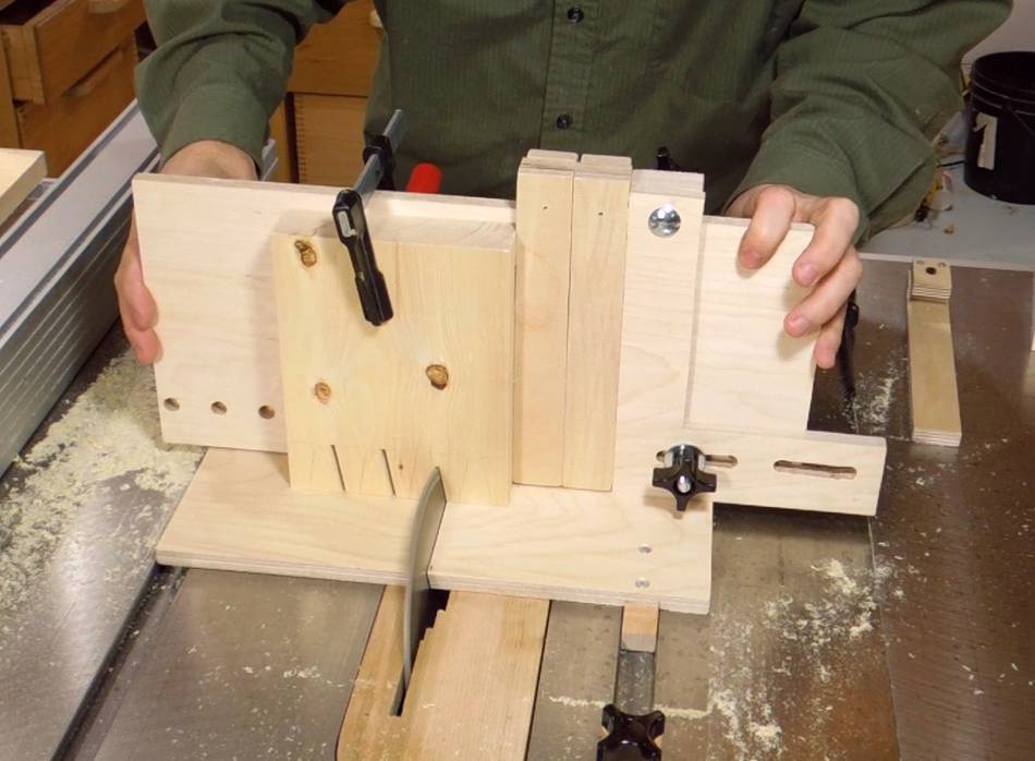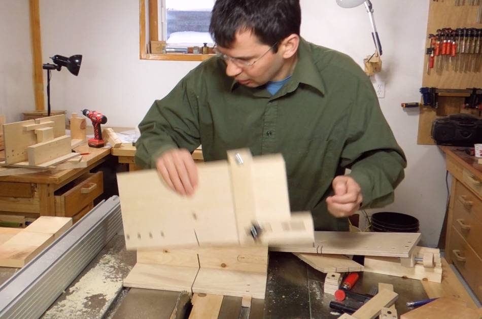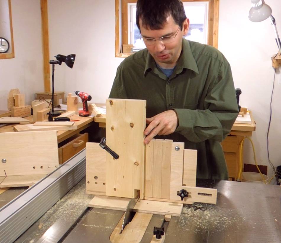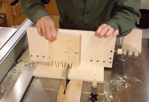 Now switching over to the tails jig, and tilting the saw by