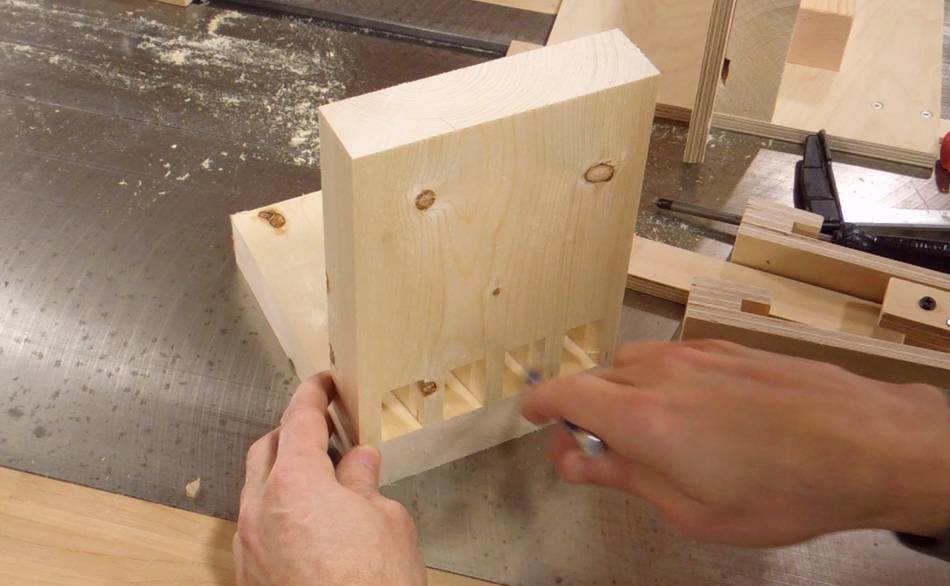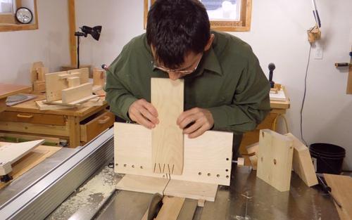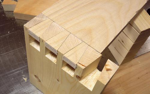 I'm using a scrap of plywood to test cutting multiple tails. Here's hooking