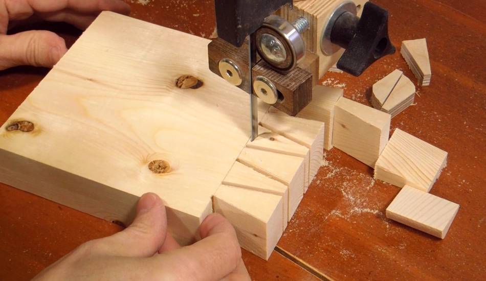 After that, cutting the waste between the tails on the bandsaw.