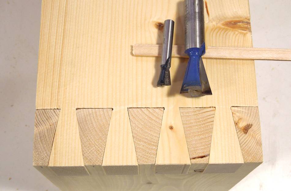 interesting. By comparison, above the joint at left, a typical dovetail bit,