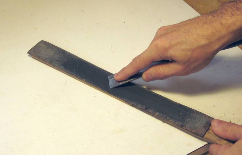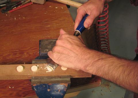 This works if the chisel is sharp and the dowels dowels are of a sufficiently hard wood such as oak. But for softer woods, such as birch, it leaves a messy surface.