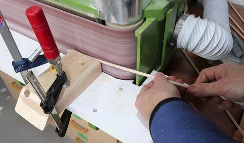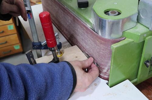 Then spinning the octagonal pieces between the block and the sanding belt.