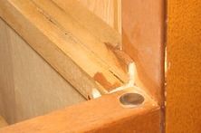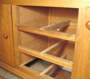 I used odd shaped pieces of scrap wood for the guide rails inside the cabinet, hence the odd shapes in the image above right.