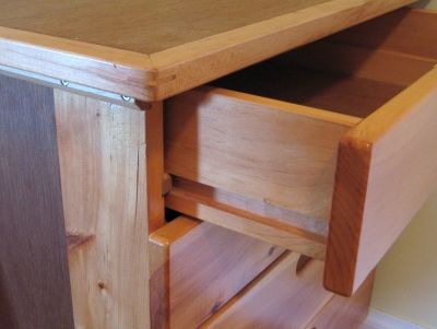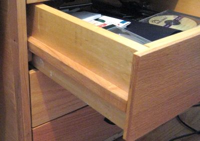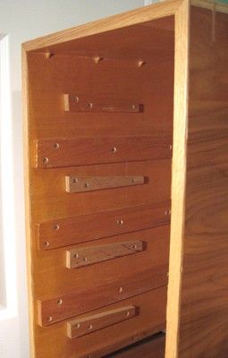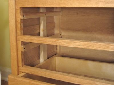 I again used the softwood drawer slot on a hardwood slide method for my disassemble-able dressers. Once again, not needing much of a frame around the drawers worked to my advantage, as I was able to keep the rest of the dresser to a bare minimum.