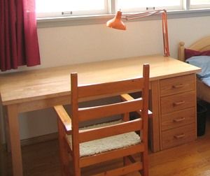 of drawers, which for a while, served as desk drawers, as seen at left.