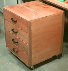I originally made this drawer chest to slide under a workbench in the basement. But as a nice touch, I spent $20 for quarter inch thick pieces of oak that I glued to the front of the drawer. The whole thing ended up looking so nice, it's now under a desk in my new place.