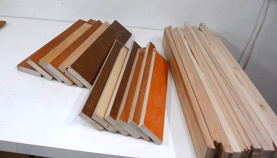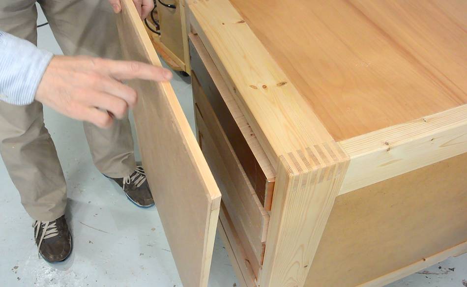 I cut the sides for the drawers out of hardwood from mostly old table tops