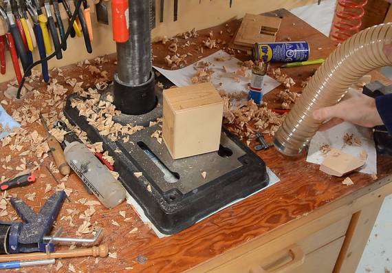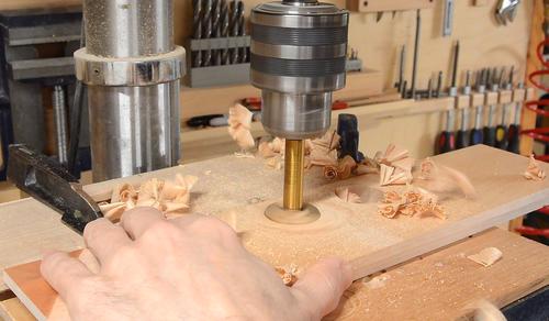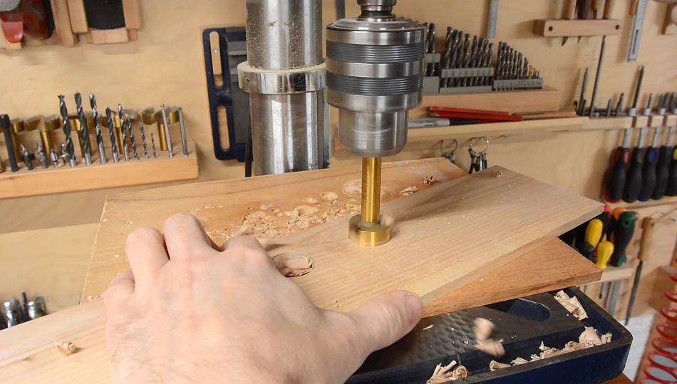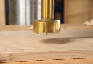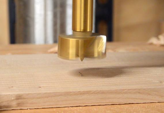 of the drawer fronts as a template, using a Forstner bit to mark the center