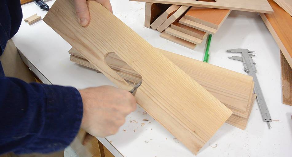 Next I cut some veneer for the drawer fronts from some ash firewood