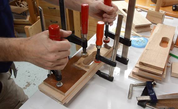 I glued a thin piece of wood to the back of the hole in the front to keep
