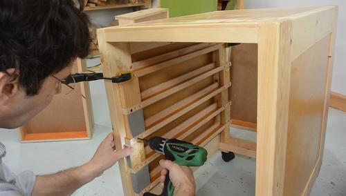 the runners evenly. I leaned the cabinet to one side a bit, then stacked