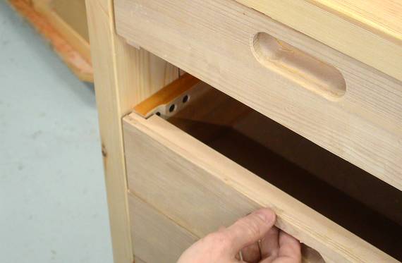 a side-guide glued onto them to keep the drawers straight. Otherwise they
