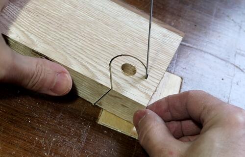I then cut that at an angle on the bandsaw, with the table angled about 25 degrees.
