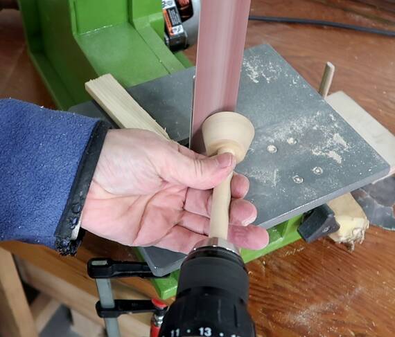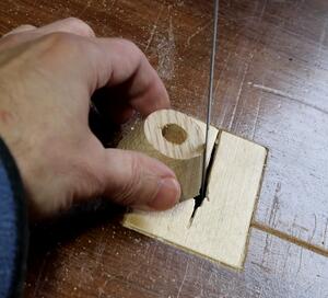 of wood with a notch cut in it to steady the knob as I spun it.