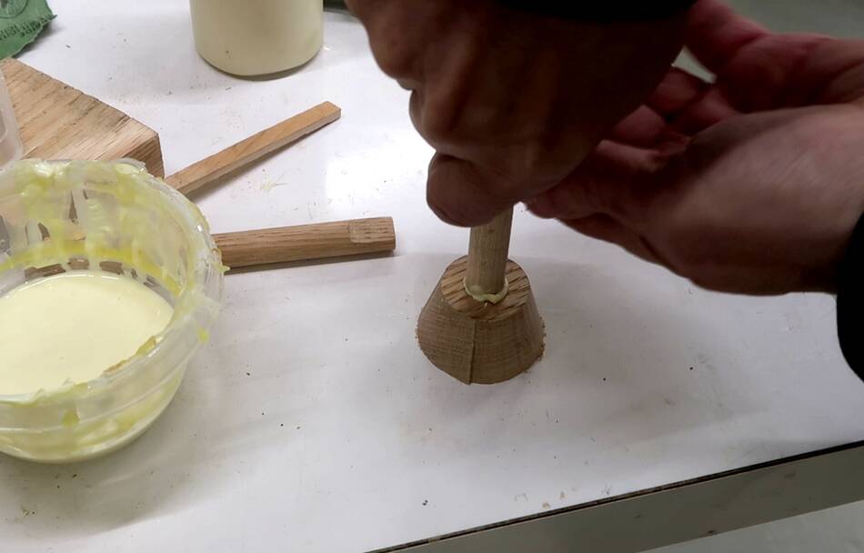 Then gluing a short 1/2" dowel into the hole.