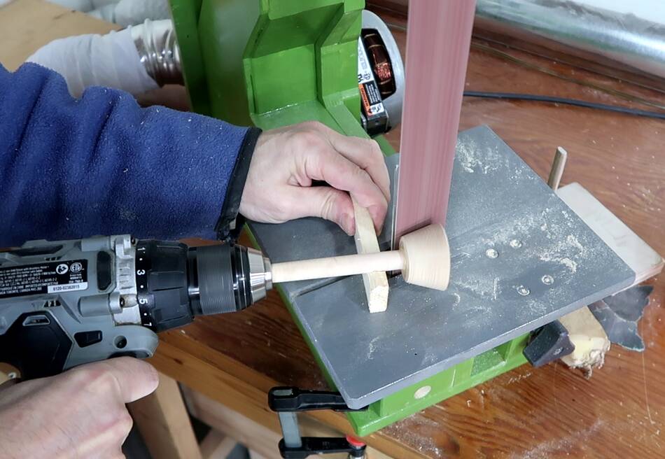I spun the knob against my big strip sander,