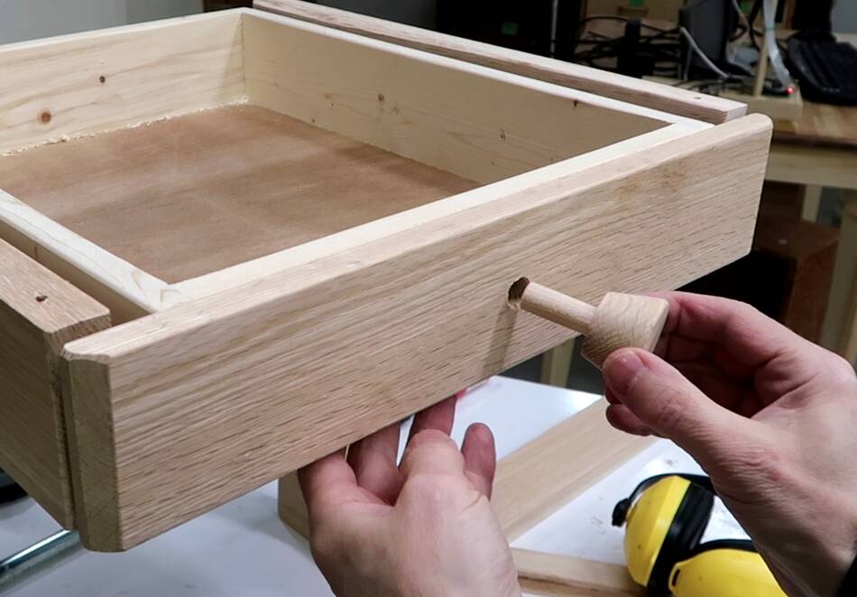 After that I cut the dowel to length, ready to be glued to the front of the drawer.