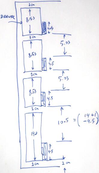 I then calculated how big the spacers between the drawer slides need to be, based on