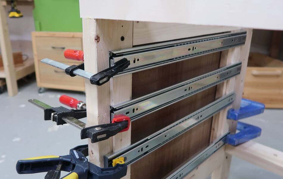 Then stacking drawer slides and spacers. I had to clamp the slides in place