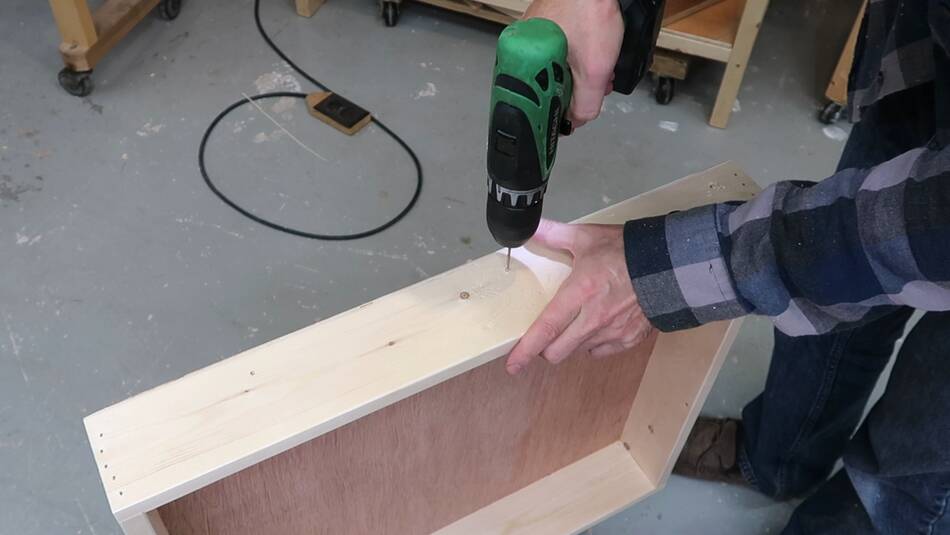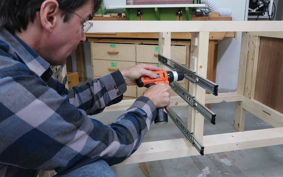 Mounting the outer part of the drawer slides in the cabinet. This was much easier