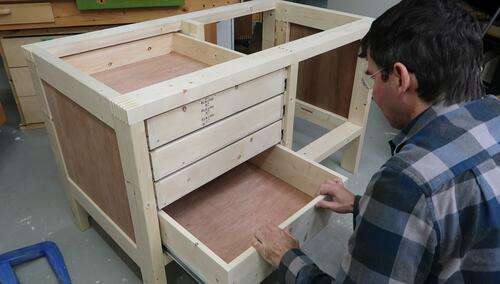 drawer front on above the bottommost drawer. That way, I could be sure the drawers were all