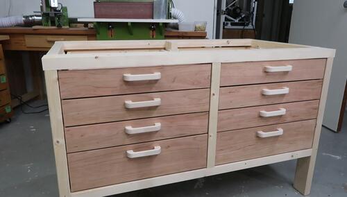 The drawer fronts are from a quarter cherry log that I got from my friend