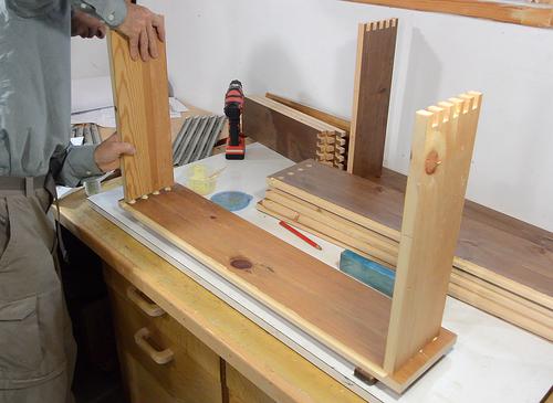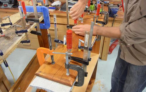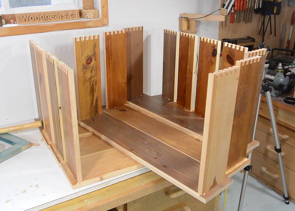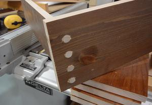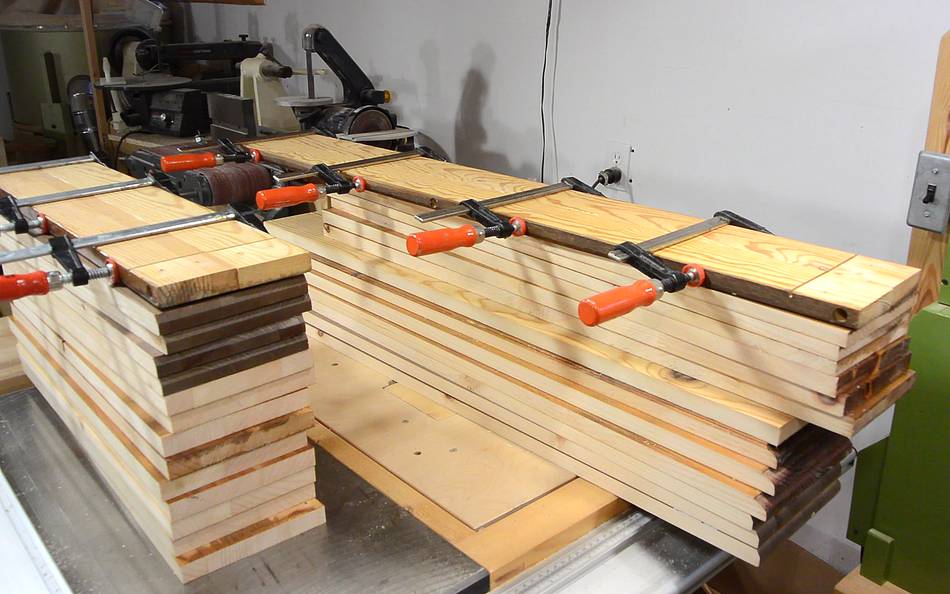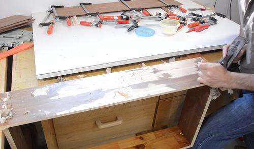 Re-gluing the pieces of wood to get pieces wide enough for the drawers.