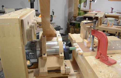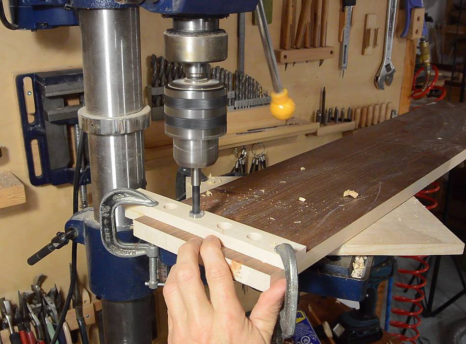 piece of wood for the drill guide, I could have moved the C-clamps further