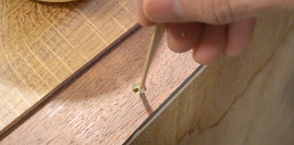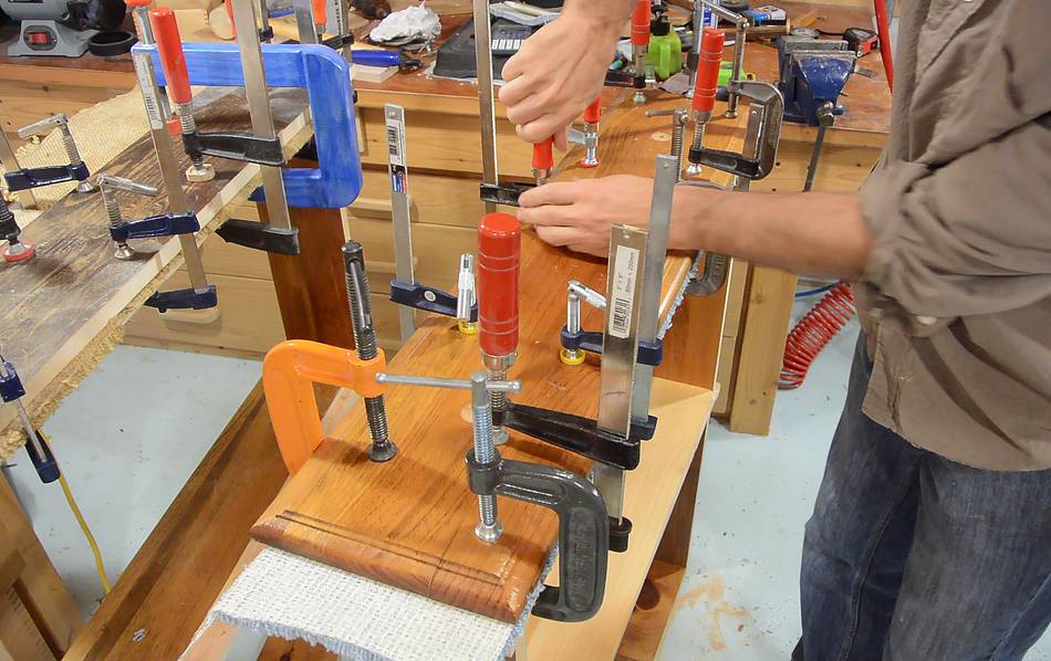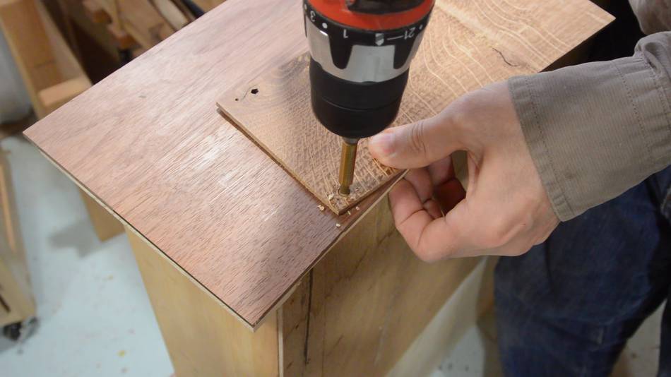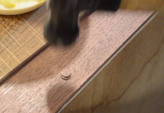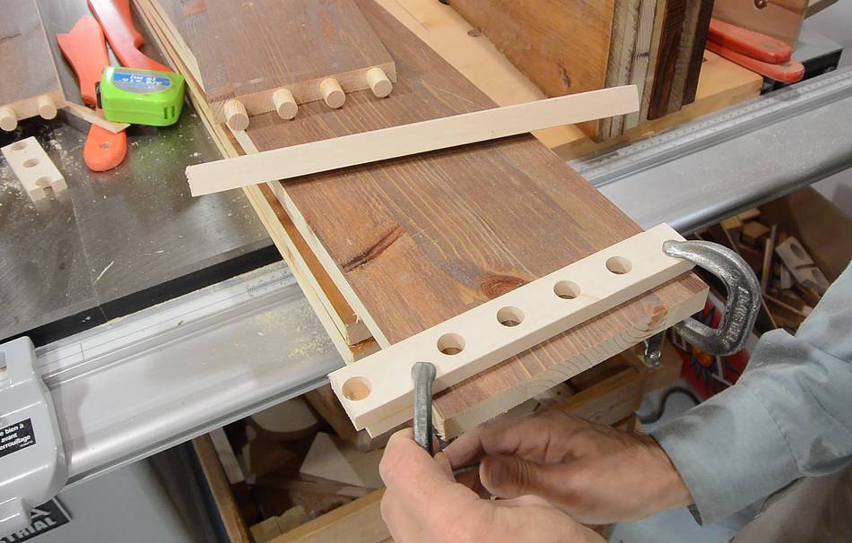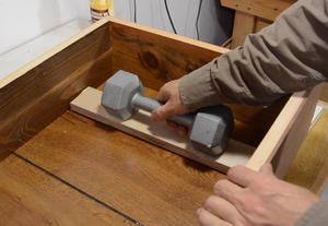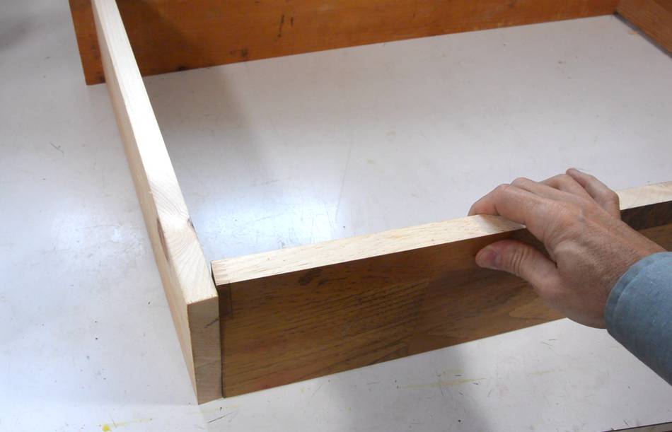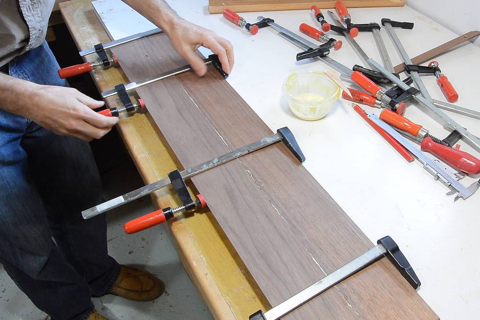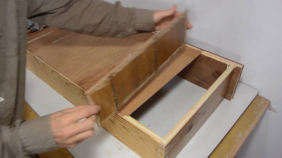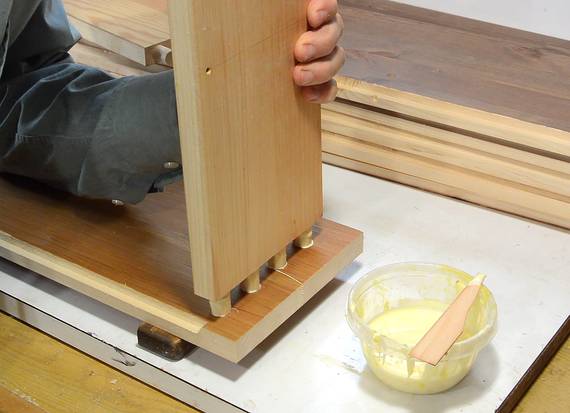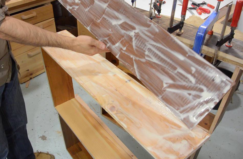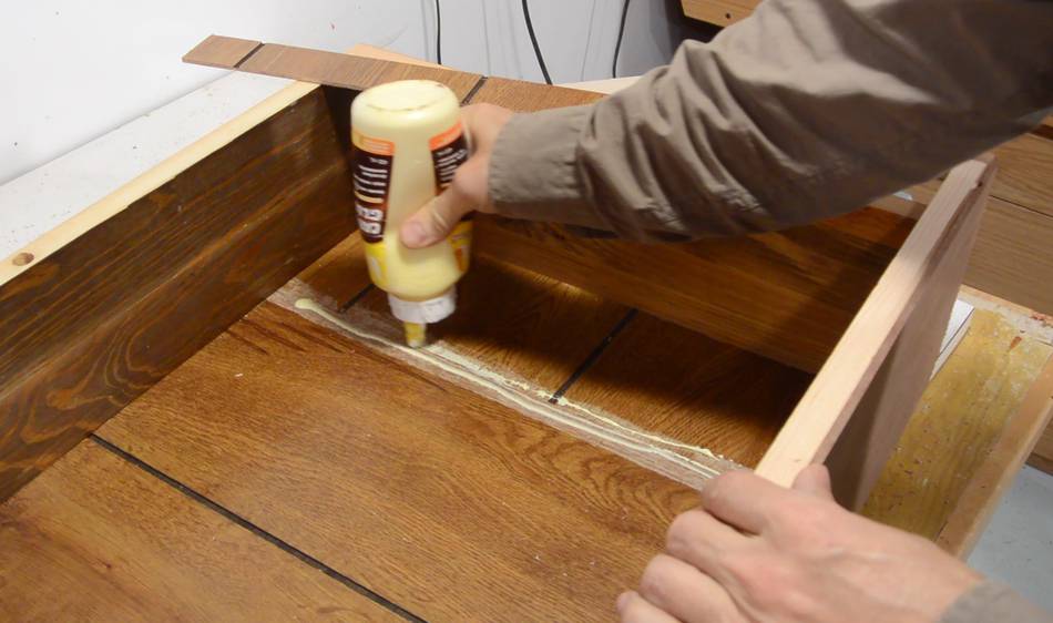 be glued. Here, I'm applying glue to add a strip of plywood over